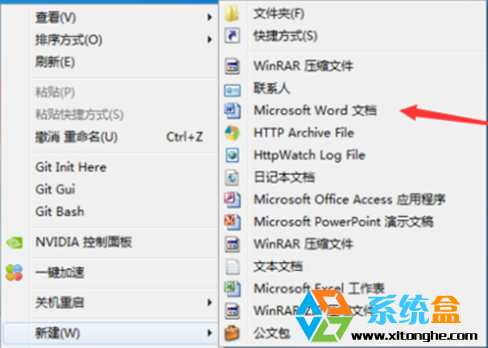 6、设置完成以后,然后在桌面中进行按“F5”的选项进行刷新系统,再次进行右键的方式以后,可以看到的是跳出了一个列表中就会有”word的文档“;