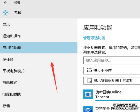 1、打开开始菜单里的“设置”应用,依次进入“系统”→“应用和功能”,可以卸掉一些您用不到的系统自带应用。