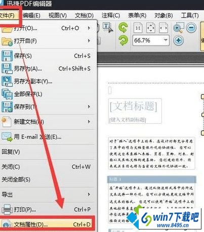 2、使用迅捷pdf工具打开pdf文档后,点击“文件”-“文件属性”项,即可进入“文档属性”;