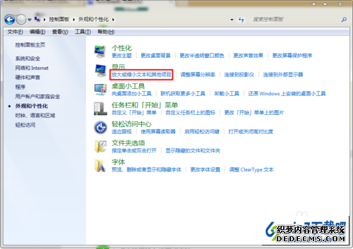 2:再依次选择“显示放大或缩小文本和其他项目”,”设置自定义文本大小“